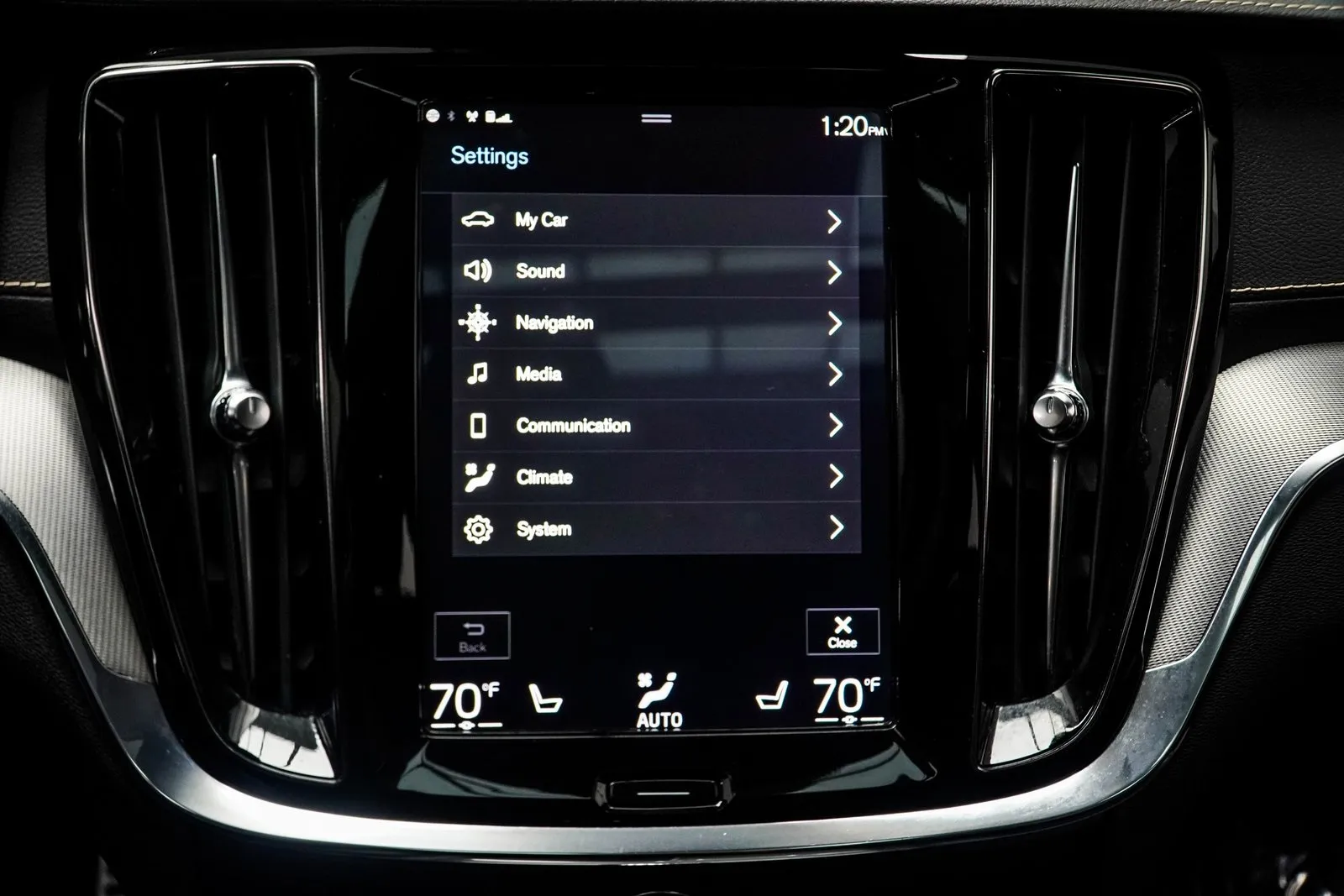 Inside, the 2020 S60 R-Design surrounds you with premium materials and sporty details. The cabin features leather sport seats, aluminum trim, a panoramic sunroof, and an intuitive driver-oriented layout. Technology highlights include a 9-inch touchscreen infotainment system with Apple CarPlay, Android Auto, Bluetooth, and a premium Harman Kardon audio system for immersive sound. With advanced features like a customizable digital driver display and navigation, every journey is seamless and connected.