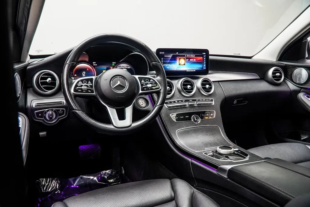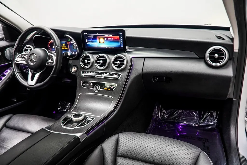 Inside, the 2021 C 300 offers a cabin that combines luxury and modern convenience. Premium materials, power-adjustable front seats, and elegant design details create an inviting atmosphere, while technology features such as a 10.25-inch infotainment display, Apple CarPlay, Android Auto, and Bluetooth keep you connected on the go. Available options like ambient interior lighting, Burmester surround sound, and a panoramic sunroof elevate the driving experience even further.